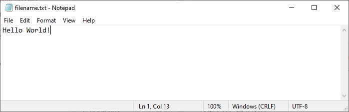 结果,当我们在计算机上打开文件时,它显示的是 "Hello World!" 而不是 "Some text":